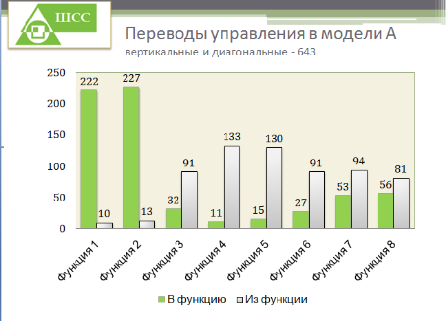 - На практике наблюдается очень мало диагональных переводов из первой и второй функций. Это объясняется тем, что первая и вторая функции, по сути, не нуждаются в таких переводах, т.к. прекрасно справляются с задачей по своему аспекту.