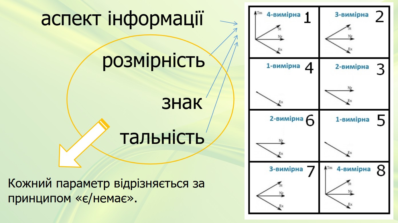 3. Розмірність - 4: досвід (Ex), норми (Nr), ситуативність (St), час (Tm)