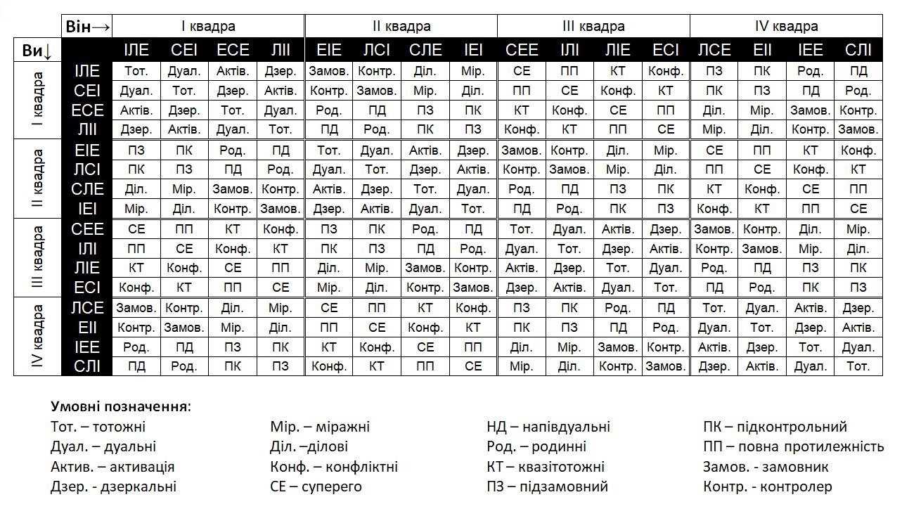 Таблиця інтертипних відносин