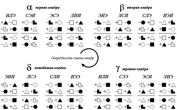 Представители: ЛСЭ (штирлиц), ЭИИ (достоевский), ИЭЭ (гексли), СЛИ (габен).
